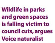 My comment piece on urban wildlife at risk due to severe funding cuts to Britain's parks and green spaces. This article was also published in South Bristol Voice and on its website.